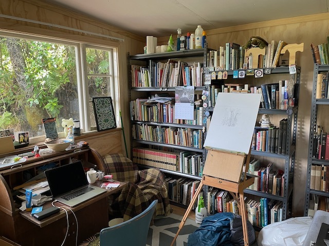 The photos below are of the studio-on-the-hill. The next stage of this project is to get the garden in shape by removing the rest of the invasive plants and putting indigenous trees and shrubs in. With the climate on the Coast being so mild it won’t be long until the garden is looking like the rest of the forested hills around.