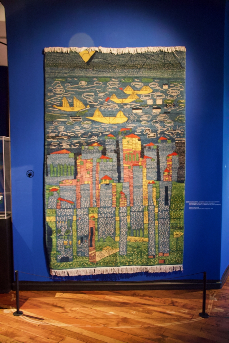 The images below are of some of the pieces on display in the Art Centre: a painting, architectural models, carpets and tapestries.