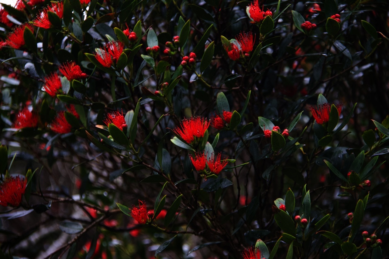 New Zealand’s native pōhutakawa is probably the best known of its trees, particularly because of its flowers of red that appear at Christmas. It has a relative, rata, that also flowers at the same time of year.