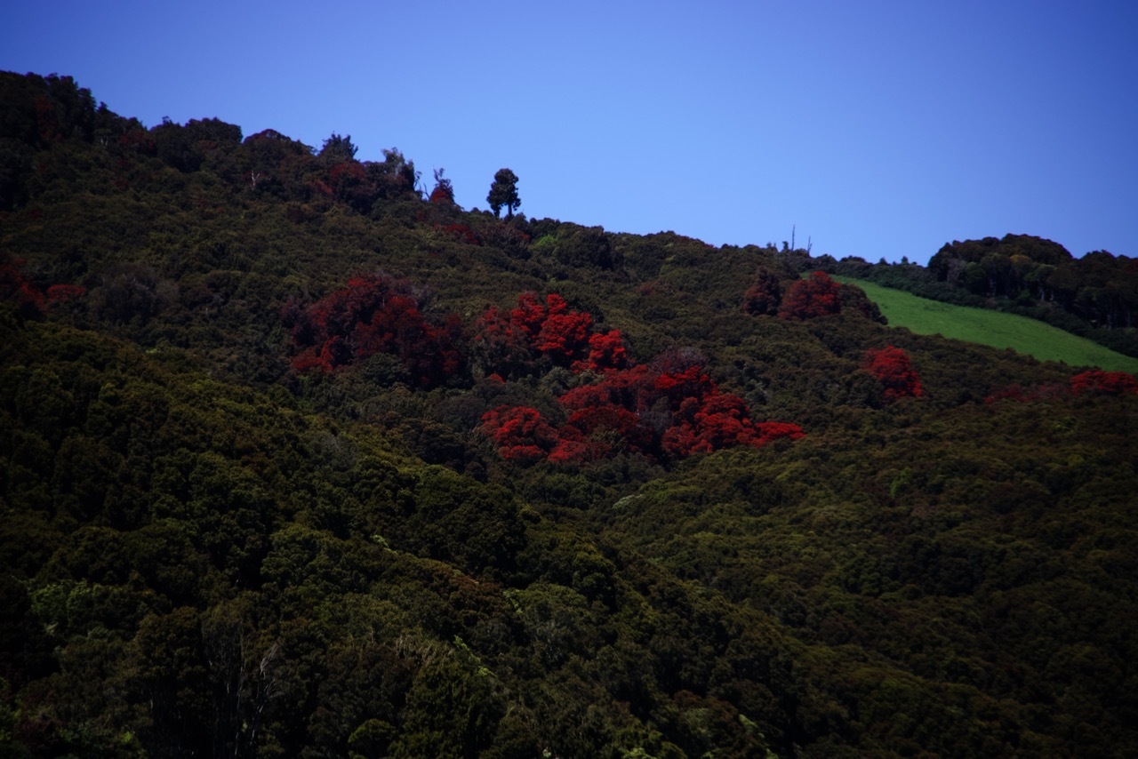 Every few years the rata flowers in profusion, causing blots of red amongst the gentle hues of the flowering trees and shrubs on the hills. This year the both rata and pōhutakawa have been spectacular, as you can see from the photographs. Occasionally one might see a white flowering plants, adding a touch of mystery to these majestic and wonderful natives.