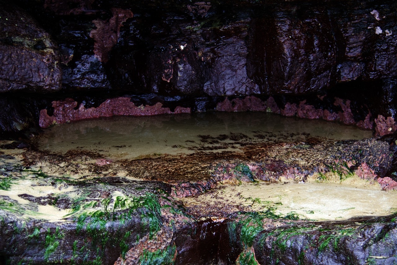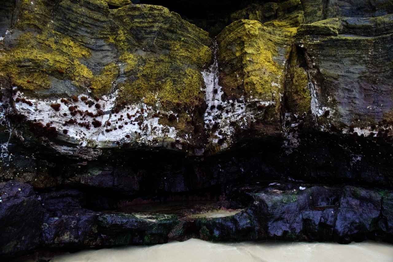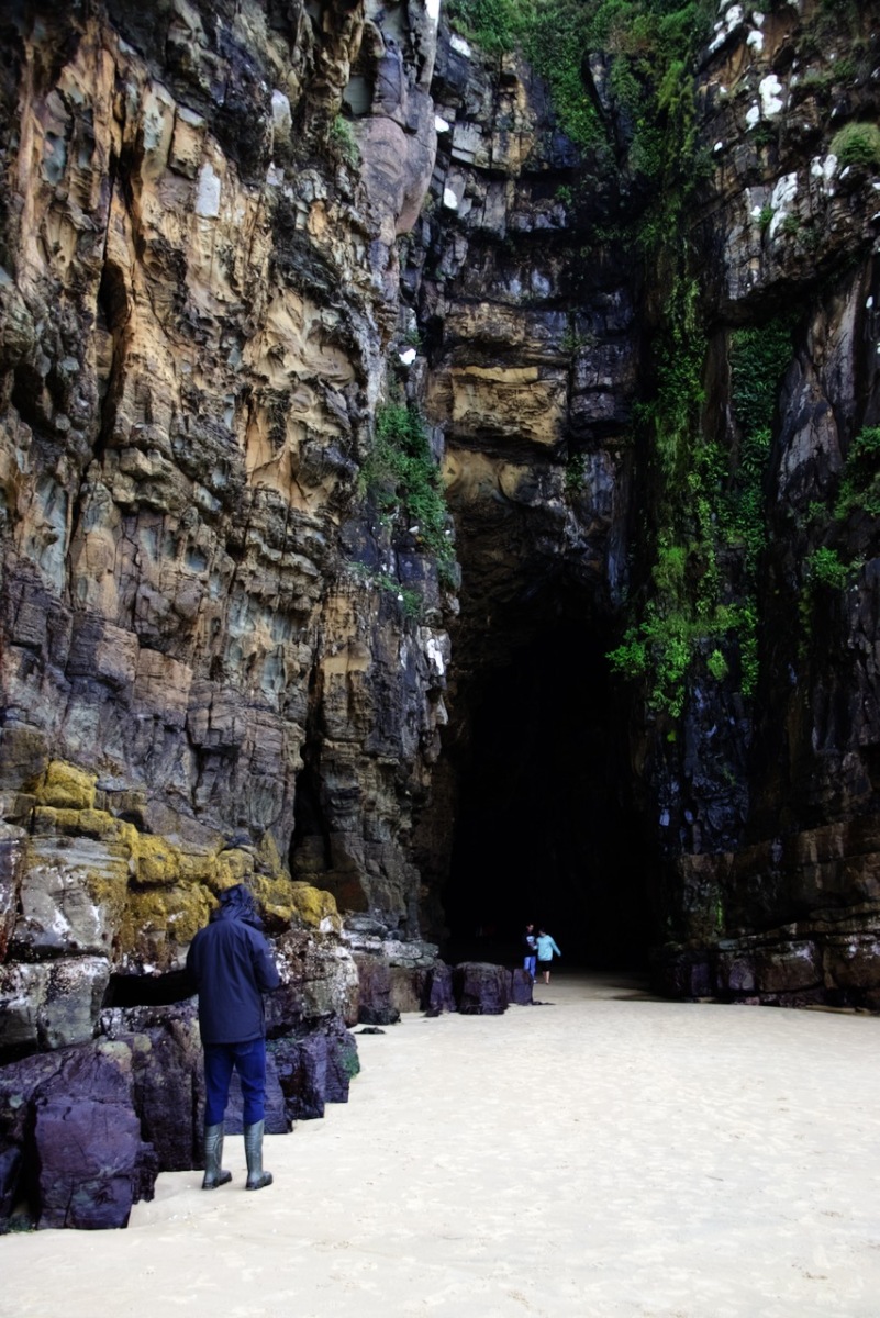 Green is the predominant hue. Many different shades and tones of green, but green nevertheless. However, there is plenty of colour around, and possibly none more startling than in Cathedral Caves. These are two entrances from the sea that has carved its way into the cliff face, joining together to make a 200 metre long, 30 metre high passageway. It is hugely impressive and is a popular tourist attraction.