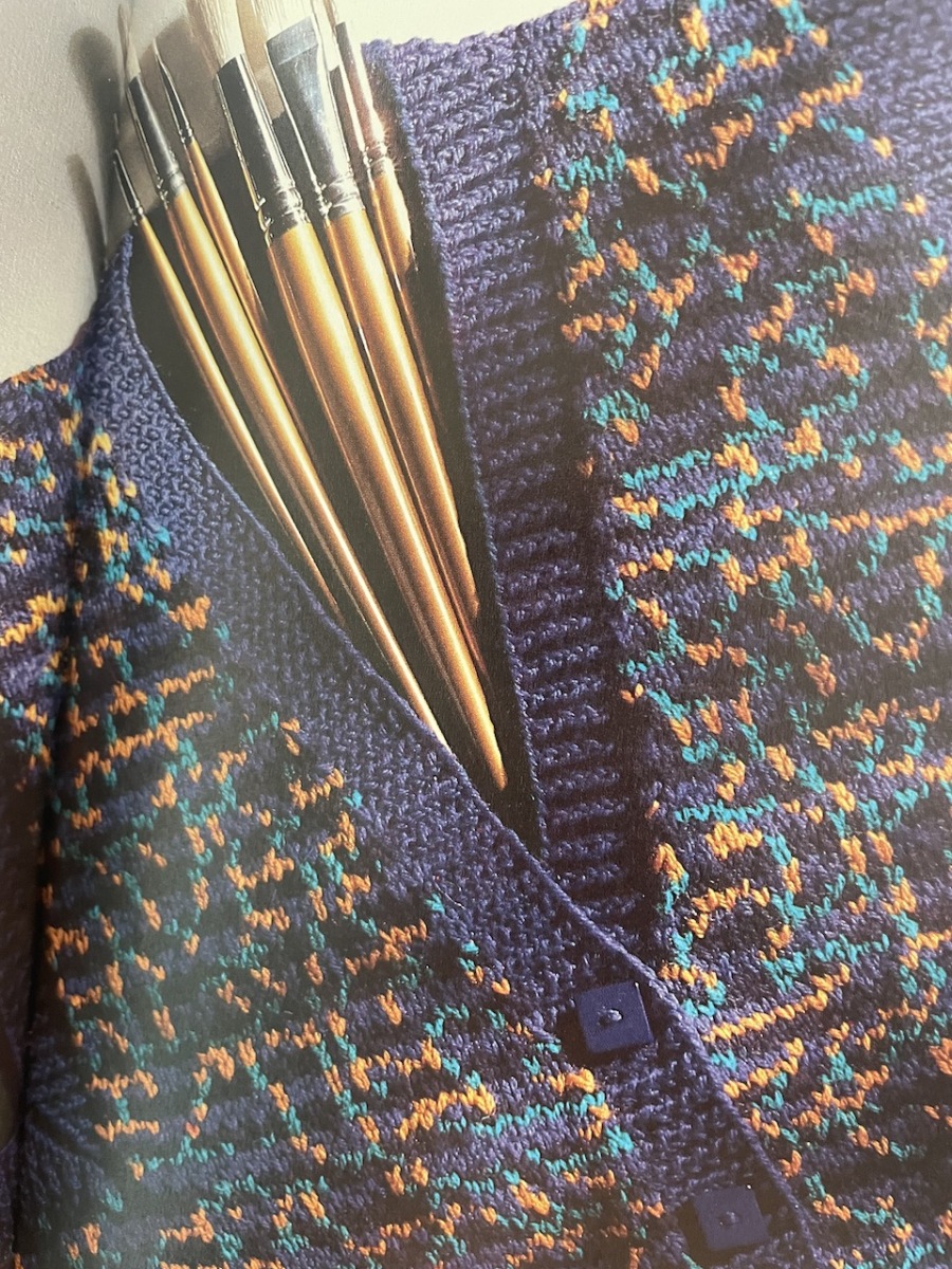 In this collection are pieces by Pierre Cardin, Kaffe Fassett, Zandra Rhodes, The Emanuels as well as Susan Duckworth, Jane Davies, Sirdar and Robin. There are others besides but all the designs have the distinction of being uniquely from the ’80s.