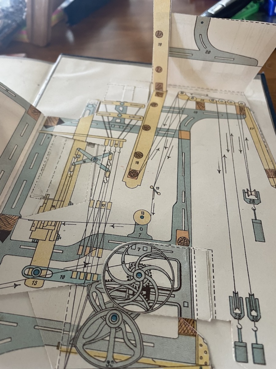 There is so much information in these kinds of books and this volume includes inside the back cover, as an added bonus, a fabulous model of a ribbon loom with flip-up and flip-out tabs printed with the mechanisms inside the machine. It is all useful, especially when one is trying to understand the different machinery and processes that go into yarn production. As the search for the perfect yarn continues by small incremental steps, so the knowledge of what needs to be done, and why, increases. That can only be A Good Thing! Long live the printed word.